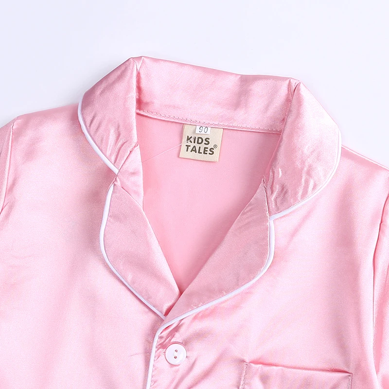 Pyjama en satin de soie rose pour enfant, garçon et fille