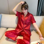 Soyez le premier à laisser votre avis sur “Pyjama en satin de soie rouge pour couple, boutonné”