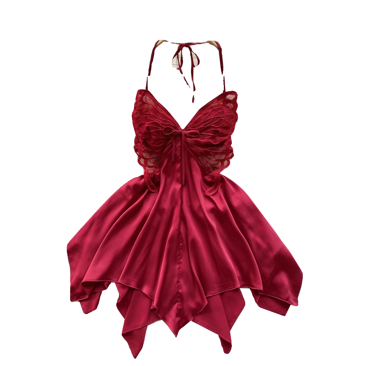 Robe mi-longue rouge Y2K à dos nu en soie, élégance et confort.
